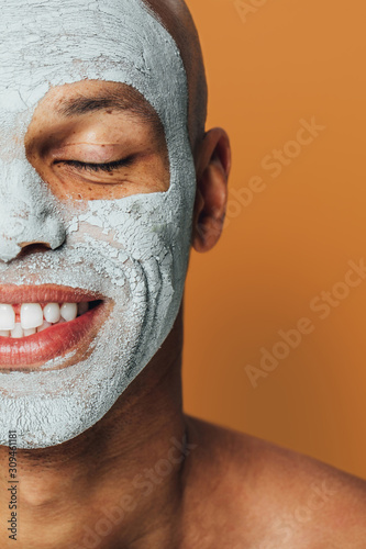 male, lip, lifestyle, healthy, health, fine-looking, facial expression, facial, face, eye, cute, cosmetic, closeup, closed, cosmetic, closeup, toothy smile, clay, mixed race, black, teeth, beauty, teeth, beautiful, studio, african american, smile, skincare, skin, routine, portrait, person, 1, natural, mouth, morning, model, mask, man, multiracial, people, adult, adult, 30s, grown-up