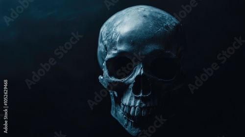 Skull displayed against a dark backdrop embodying a Halloween theme