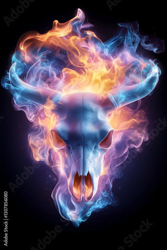 skull, fire, flames, burn, burning, black, concept, art, fantasy, illustration, book, cover, death, danger, horror, evil, daemon, halloween, mystical, magic, fiery, inferno, glowing, bone, animal, cow, horn, smoke, energy, dark, digital, graphic, design, abstract, background, violent, symbolic, dramatic, spirit, texture, power, threat, grim, scarey, vibrant, artwork