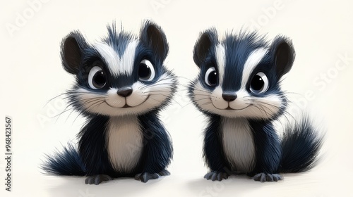 Skunk cartoon in a playful pose on a white background, cheerful and vibrant