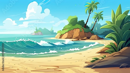 generative, ai, sky, cartoon, sea, island, ocean, beach, sun, flat, background, illustration, caribbean, view, cloud, bay, scenery, wave, seascape, graphic, horizon, water, shore, travel, summer, empty, scene, summer, design, nature, light, blue, tropical, vacation, day, relax, sunlight, season, tour tourism, sunshine, exotic, resort, sunny, tranquil, cloudy, landscape, mountain, lake