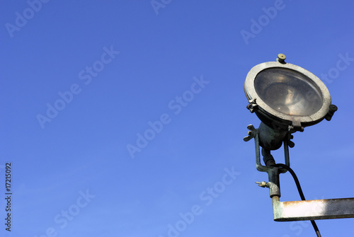 spotlight, sky, wire, outdoors, copy space, blue, nobody, horizontal, lamp, light, sky blue, floodlight