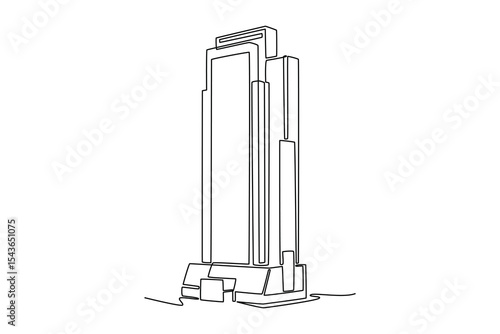 Sky building concept. Single line draw design. Vector graphic illustration