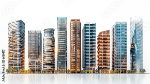 Skyline Featuring a Row of Sleek Glass and Steel Highrise Buildings