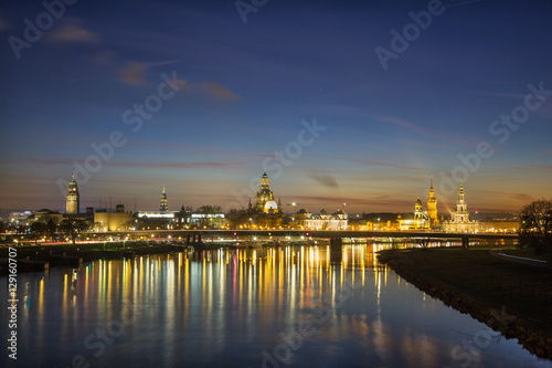 german, saxon, dresden, countryside, city, city landscape, skyline, river, elba, baroque, frauenkirche, evening, evening scene, night, light, lighted, tourist attraction, objective, outside