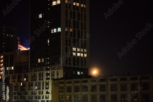 skyscraper, background, night sky, moon, light, ukraine, kiev, building, street, architecture
