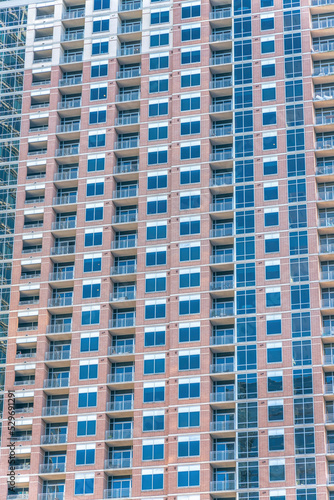 Skyscraper in Austin Texas with glass windows and balconies at the facade