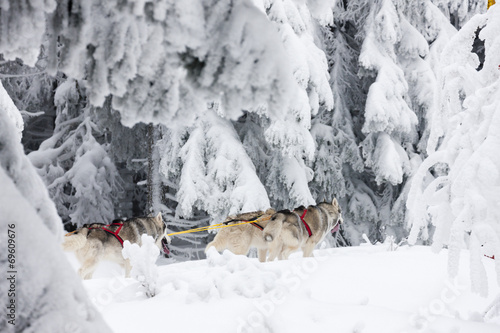 outdoors, outside, exterior, europa, central europe, czech republic, czechoslovakia, bohemia, nature, fauna, animal, mammal, dog, pet, sled, sled dog, activity, motion, movement, sport, winter sports, running, compete, compete, competition, race, match, winter, snow, snowy
