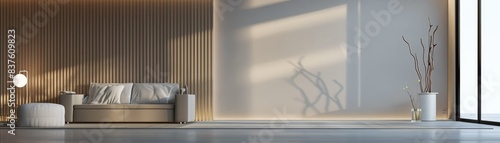 sleek, sophisticated, living, vignette, sofa, floor lamp, empty space, modern, minimal, clean, simple, contemporary, chic, stylish, elegant, monochrome, neutral, light, airy, open, roomy, bright, minimalist, decor, home interior, lifestyle, no people, copy space, template, digital illustration, background, display, gallery, portfolio, product, architecture, design, furniture, lighting, table, sink, bathroom, interior, kitchen, home