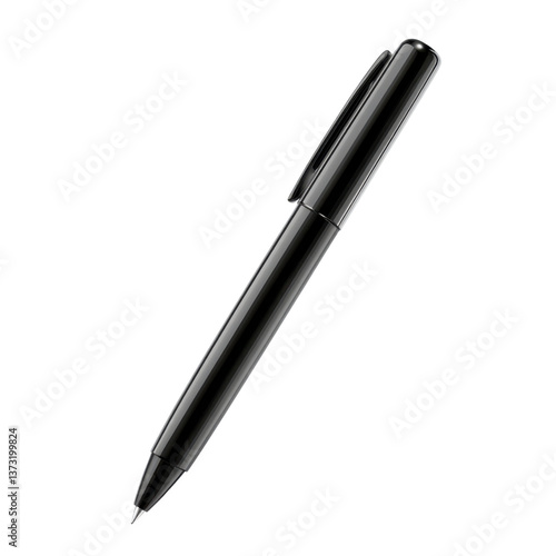 Sleek black ballpoint pen on a transparent background, a modern writing instrument for office or creative work, isolated for easy design integration