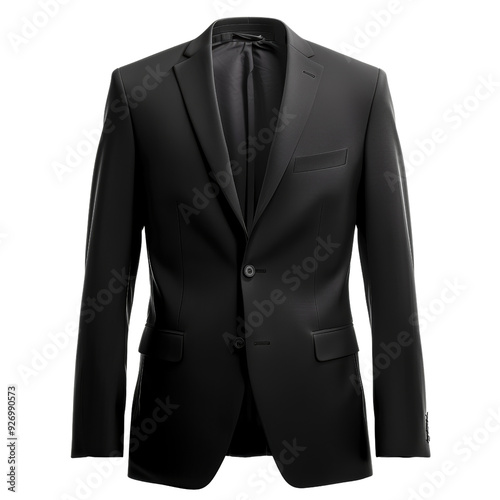 Sleek black formal business suit jacket on white background. Perfect for professional and formal occasions.
