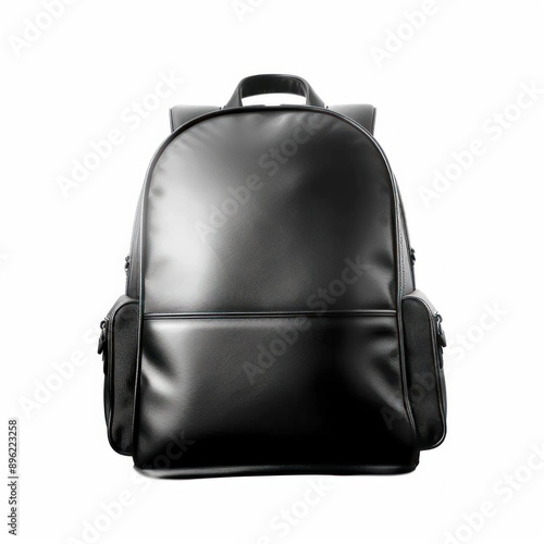 sleek, black, leather, backpack, bag, white, background, accessory, fashion, style, modern, design, school, travel, casual attire, elegant, hard-wearing, zip, compartment, pocket, handle, strap, portable, baggage, minimalist, chic, trendy, unisex, practical, comfortable, smooth, material, classic, urban, illustration, ai, isolated, front, view, versatile, professional, college, everyday, stylish, contemporary, clean, neat, compact