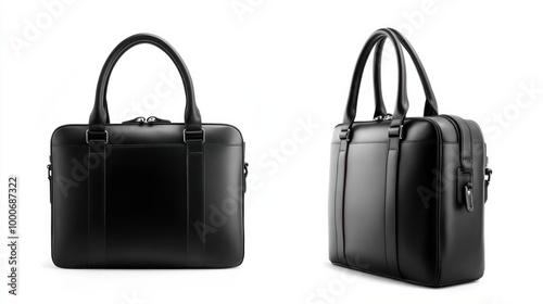 Sleek black leather gentleman bag with handles, isolated on a white background, showing front and side views.