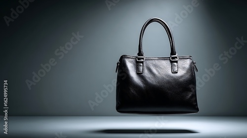 Sleek Black Leather Handbag Floating in Spotlight with Luxury Fashion, and Studio Shot.