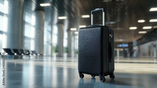 sleek black suitcase on wheels in airport lobby ready for resort or business trip 3d rendering