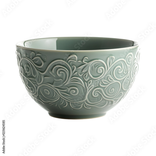 Sleek Ceramic Mixing Bowl Set with Embossed Decor Isolated on Transparent Background