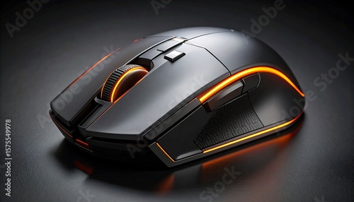 Sleek Gaming Mouse with Orange LED Lights on Dark Background.