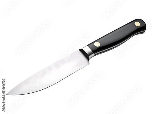 Sleek kitchen knife with a sharp, stainless steel blade and elegant black handle. Perfect for culinary, food prep, or advertising concepts emphasizing precision and quality.