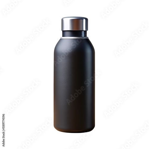 water, bottle, recyclable, beverage, hydratation, container, black, matte, silver, cap, metal, modern, minimalist, clean, studio, shot, isolated, transparent, background, product, object, design, environmentally friendly, healthy, lifestyle, refreshment, drink, liquid, steel, aluminium, sleek, stylish, smooth