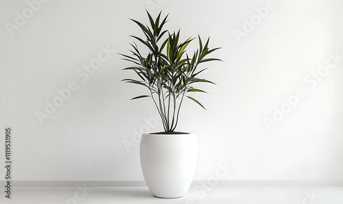 sleek minimalist indoor plant in modern white planter clean lines and monochromatic palette emphasize the plants organic form against a stark white background, Generative Ai