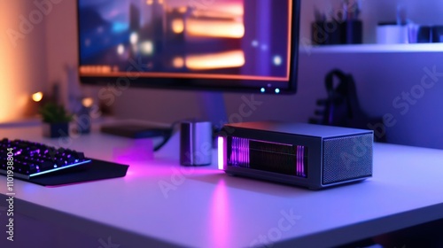 sleek, modern, central processing unit, cooler, led, light, minimalist, white, desk, advanced, cooling, technology, computer, room, office, interior, business, monitor, furniture, television, table, screen, home, television, chair, design, empty, indoor, equipment, keyboard, laptop, nobody, lcd, hospital, workplace