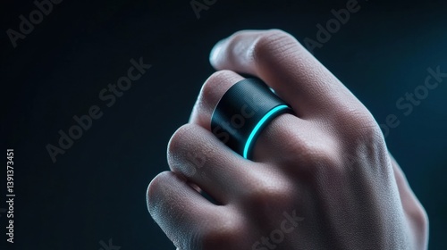 Sleek Modern Smart Ring with Light Accents on Human Hand