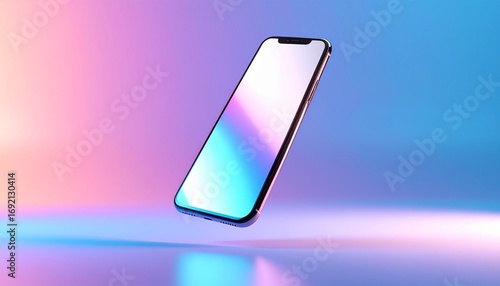 Sleek modern smartphone with a vibrant gradient screen floating against a colorful background, showcasing innovative digital technology and mobile communication