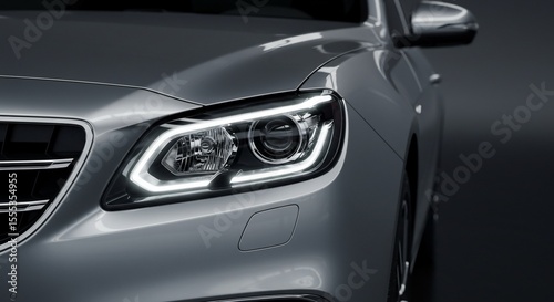 Sleek Silver Car Headlight Closeup in Dark Studio