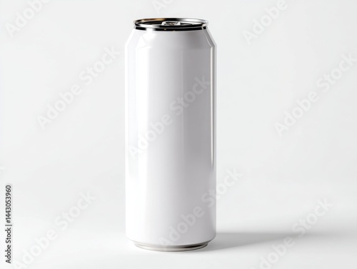 Sleek white aluminum can on clean background studio shot capturing modern minimalist design for beverage branding and packaging mockups with subtle reflections