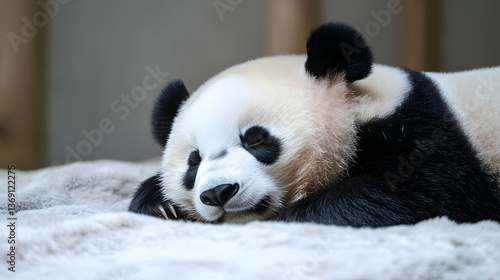 panda, animal, cute, baby, wildlife, sleeping, black-and-white, closeup, lying down, fluffy, soft, conservation, adorable, mammal, china, asia, zoo, photo, nature, peaceful, restful, calm, gentle, tender, fuzzy, plush, tenderness, zoo animal, animal portrait