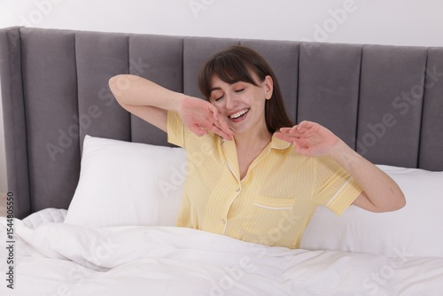 adult, awaking, background, beautiful, bed, bedding, bedchamber, bedtime, blanket, caucasian, clean, comfortable, comfy, cosy, domestic, dream, duvet, female, good, happy, health, healthy, home, hotel, house, indoor, leisure, lifestyle, linen, luxury, material, mattress, morning, orthopedics, person, relax, rest, routine, sleep, sleepy, smiling, soft, textile, arousing, weekend, wellness, white, woman, yawning