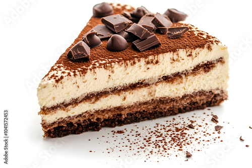 Slice of traditional Italian dessert Tiramisu pastry cake with mascarpone cream isolated on white background