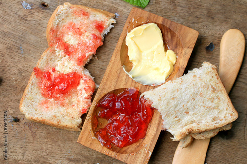 Slice toast whole wheat bread with strawberry jam