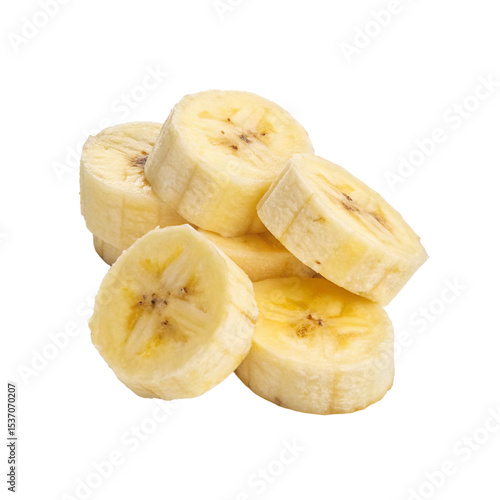 Sliced Banana: A close-up shot of freshly sliced bananas, showcasing their creamy, yellow flesh, perfect for illustrating healthy eating and culinary applications.