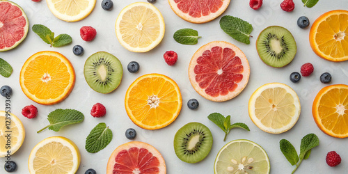 grapefruit, lemon, orange, citrous, sliced fruit, fresh fruit, juicy, vitamin c, health food, tropical fruit, grey background, organic food, food photography, refreshing, vivid colors, natural food, healthy lifestyle, exotic fruit, raw food, wellness, fresh produce, diet food, detox, juicy fruit, whole food