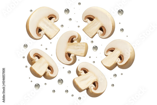isolated, cut-out, food, fungal, vegetable, edible, healthy, nourishment, ingredient, cooking, vegetarian, vegan, diet, fresh, brown, white, organic, closeup, macro, tasty, delicious, appetising, harvest, autumn, illustration, art, clipping path, studio shot, detailed, freshness, gastronomy, nature, natural, raw, group, water droplets, transparent, isolated object