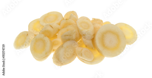 parsnip, sliced, cut, section, raw, uncooked, fresh, organic, food, sweet, cooking ingredient, culinary, cookery, ripe, vegetarian, vegan, edible, healthy, alimentary, group, serving, portion, half face, isolated, white background