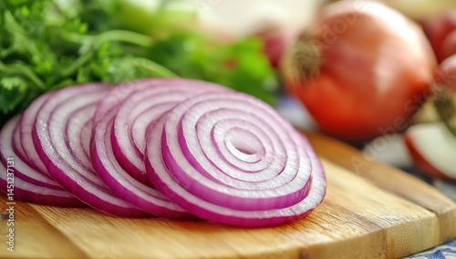 Sliced Red Onions on Wooden Board, Fresh and Vibrant