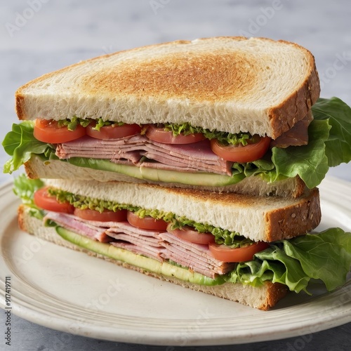 sandwich, bread, food, tomatoes, lettuce, cheese, lunch, ham, snack, isolated, meal, healthy, white, breakfast, meat, salad, fresh, vegetable, bacon, plate, green, wheat, toast, dinner, fast