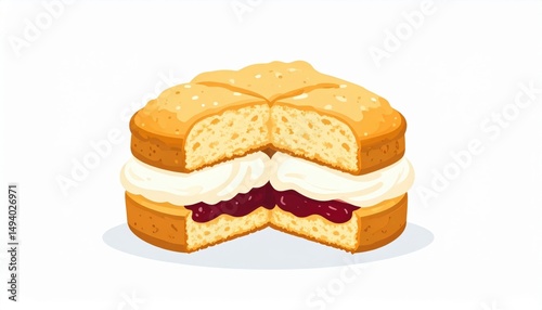 scone, dessert, pastry, food, baked, good, sweet, treat, cream, jam, sliced, cut, yellow, light, brown, white, red, pixel, art, illustration, isolated, delicious, bakery, english, tea, time, breakfast, lunch, graphic, design, image