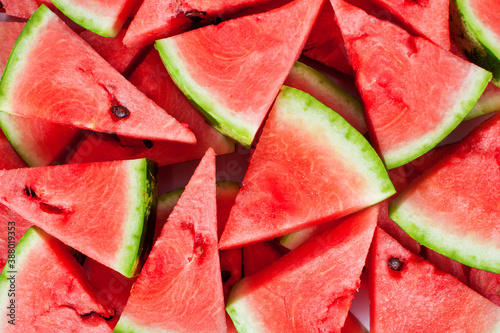 Slices of ripe red watermelon. View from above. Background, texture