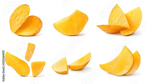 vegetable, food, ingredient, cooking, cookery, health food, fresh, organic, diet, nourishment, isolated, white background, closeup, macro, yellow, gold, delicious, tasty, appetising, vegan, vegetarian, side dish, potato chips, wedge