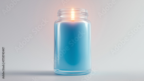 Slim tall jar neon blue wax, cotton wick, futuristic glowing style