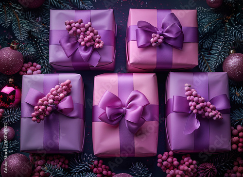 christmas, violet, new year, purple, christmas, holiday, gift, luxury, ribbon, ball, box, decoration, happy, festive, gold, pine cone, birthday, concept, background, copy space, poster, light, present, ornament, advertising, greeting, composition, discount, celebration, tree, shopping, design, elegant, decor, season, fashion, snowflake, topview, glistering, sale, star, banner, surprise, party, layout, confetti, december, bokeh