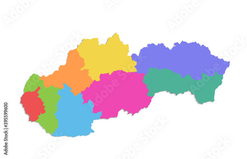 Slovak Republic map, administrative division, separate individual regions with Slovakia names, color map isolated on white background blank