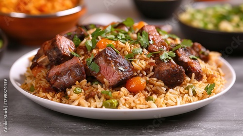 rice, cooking, ingredient, eatery, nourishment, favor, herb, receipe, homemade, spice, savoury, plate, beef, healthy, epicure, dish, appetising, meal, colourful, asian, food, fresh, dinner, traditional