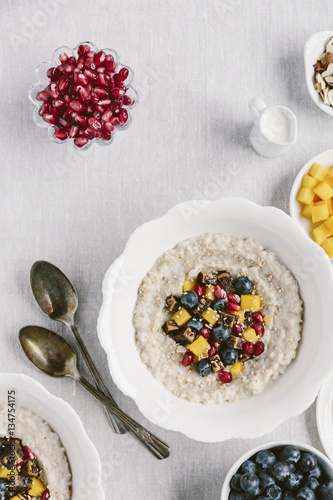 blueberry, breakfast, food, fruit, healthy, homemade, honey, nobody, oatmeal, oat, topview