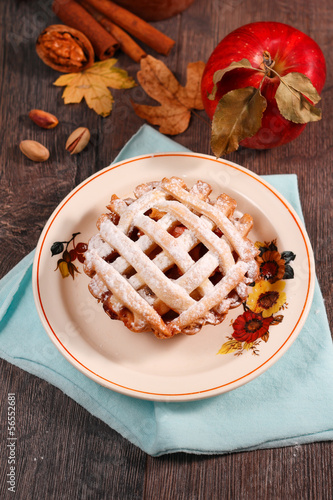 apple pie, apple, cake, cinnamon, cookery, dessert, food, fruit, homemade, ingredient, natural, powdered sugar, receipe, rustic, slice, sugar, table, wedge, wood, small, autumn, fall, healthy, tart