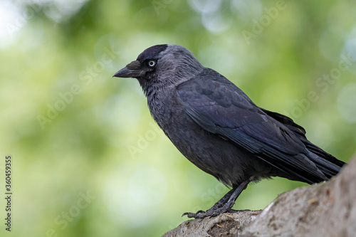 Small black bird sitting on tree