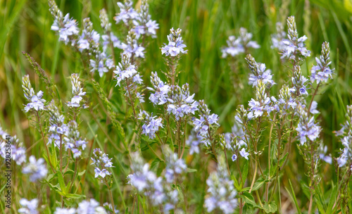 Small blue flowers on the field as a background